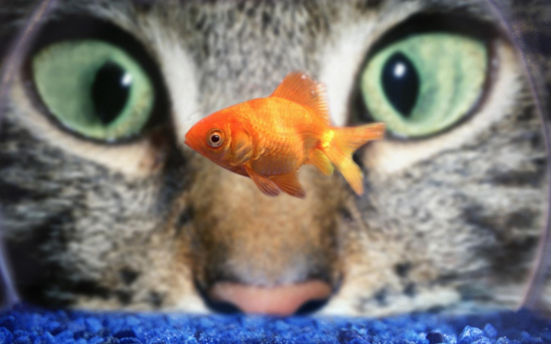 Wallpaper The cat is watching fish in an aquarium