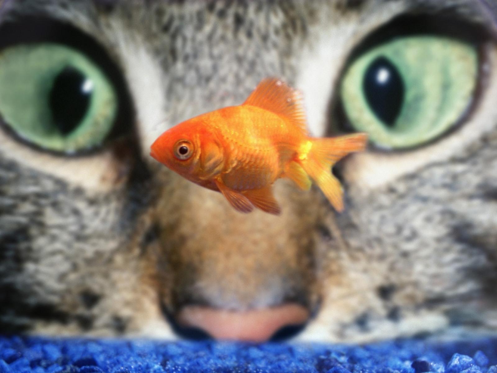 Wallpaper The cat is watching fish in an aquarium