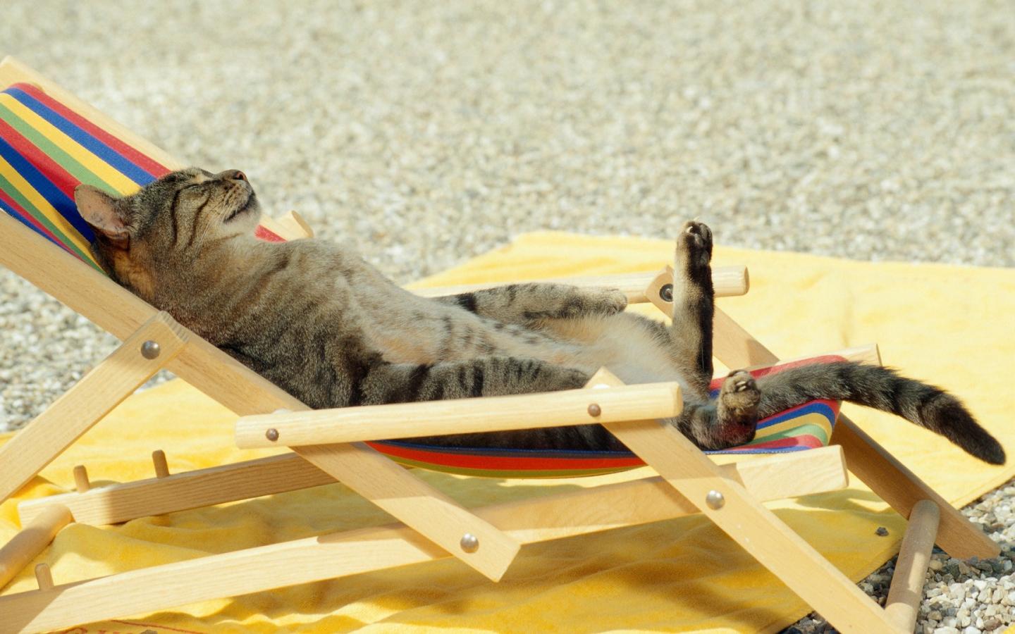Wallpaper Cat sunning on the beach