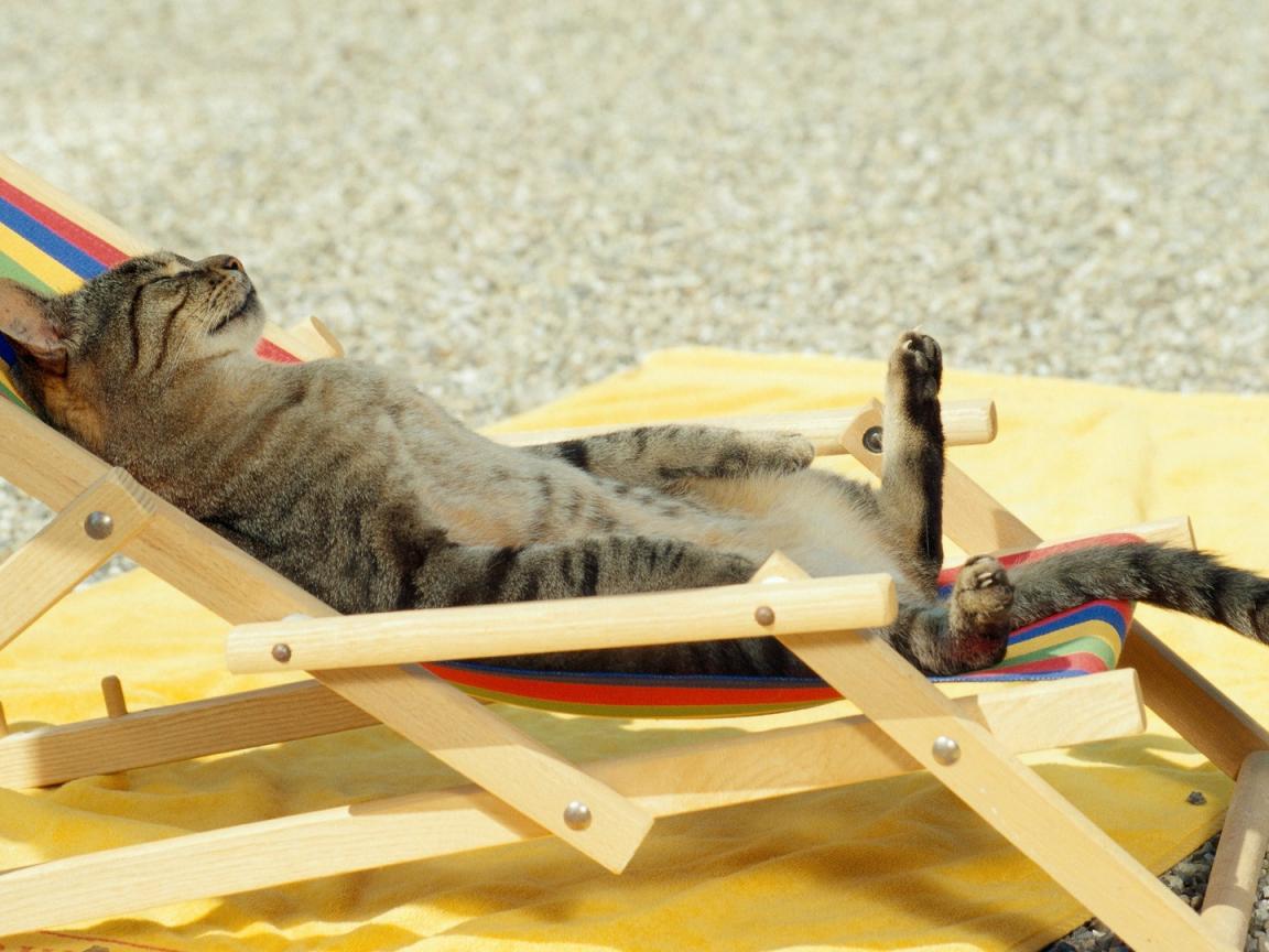 Wallpaper Cat sunning on the beach