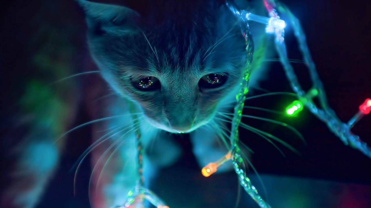 » Wallpaper Cat in Christmas garland