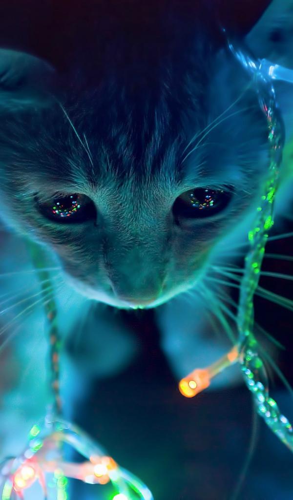 » Wallpaper Cat in Christmas garland