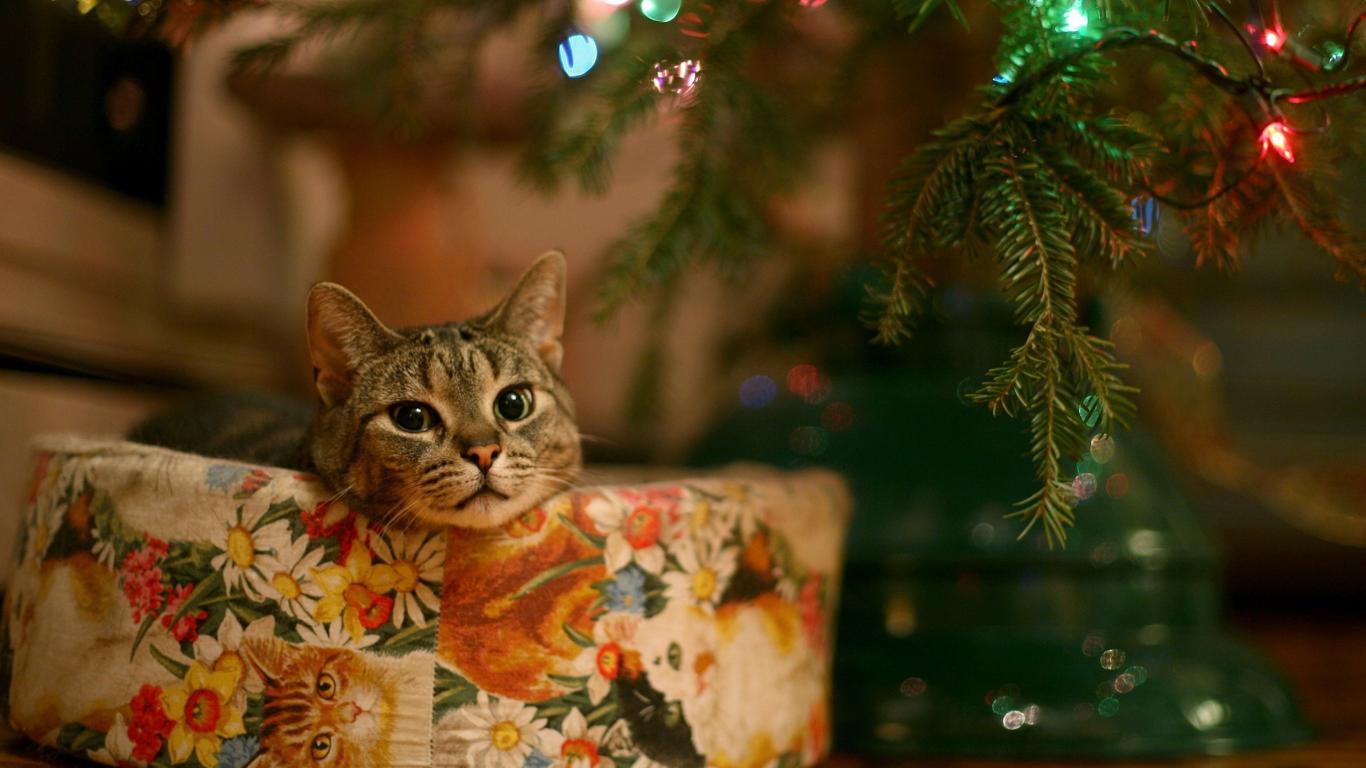 Wallpaper Cat in a New Year gift