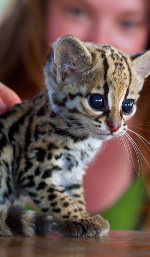 » Wallpaper Girl stroking a kitten ocelot