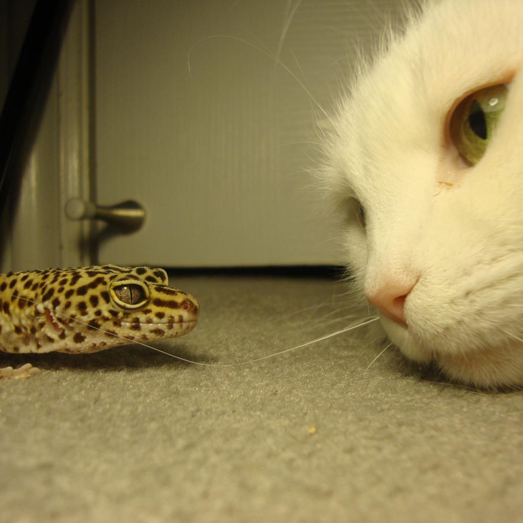 » Wallpaper White Cat and green lizard