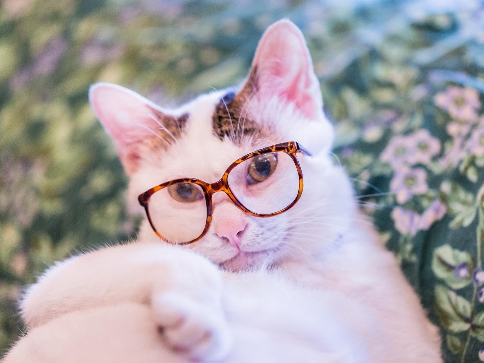 Wallpaper White cat with glasses