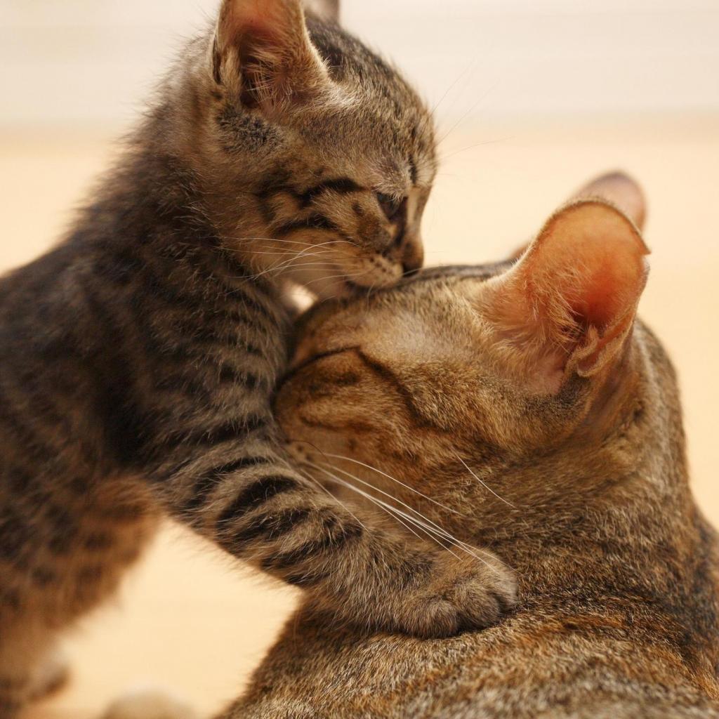 Wallpaper Kitten kissing his mom