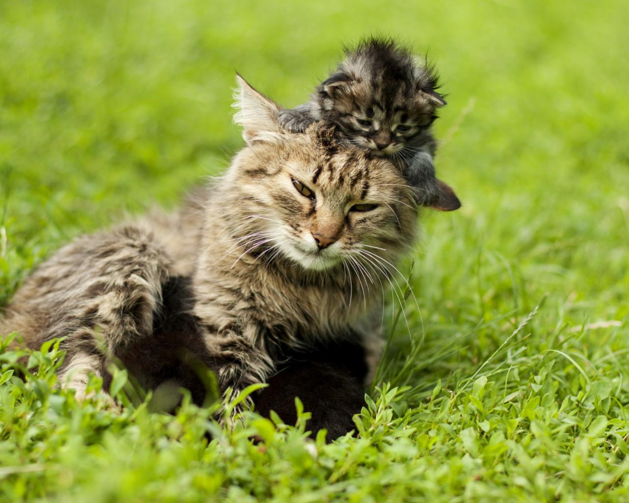 Wallpaper Kitten on the head of my mother