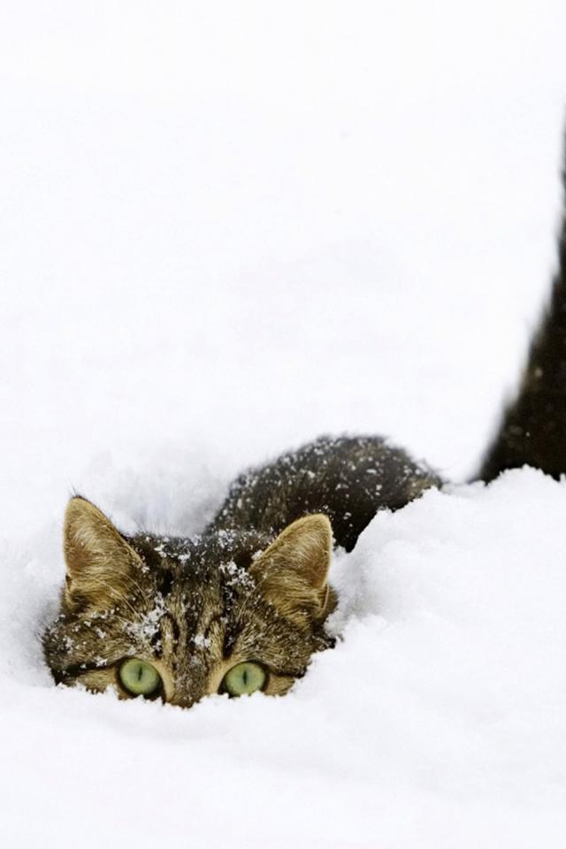 Wallpaper Cat hiding in snow