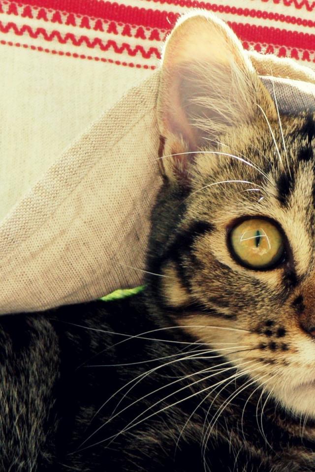 Wallpaper Cat under an embroidered towel