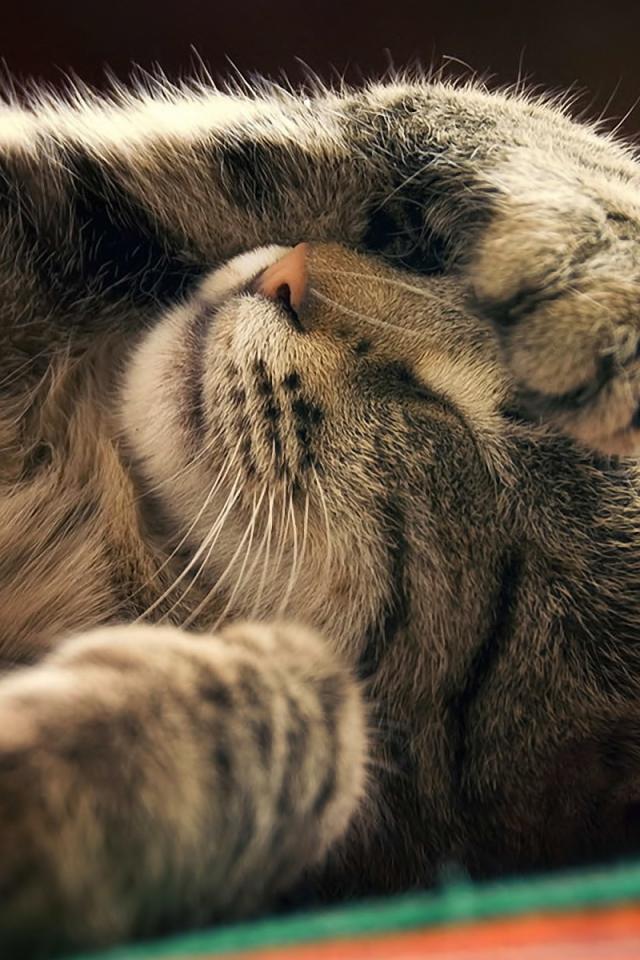 Wallpaper The cat closes a paw a muzzle