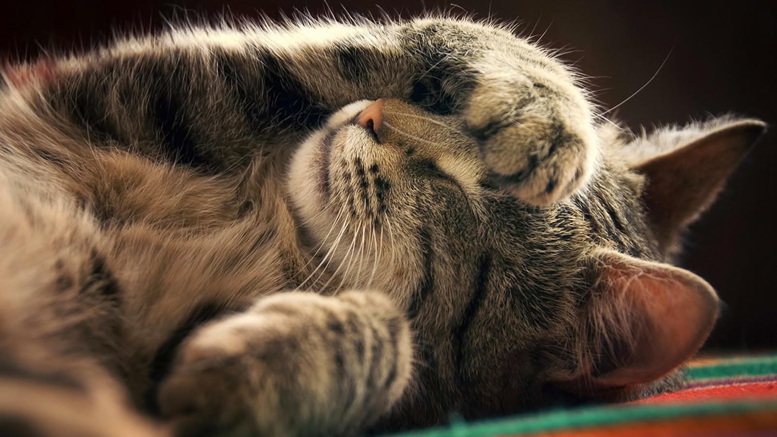 Wallpaper The cat closes a paw a muzzle