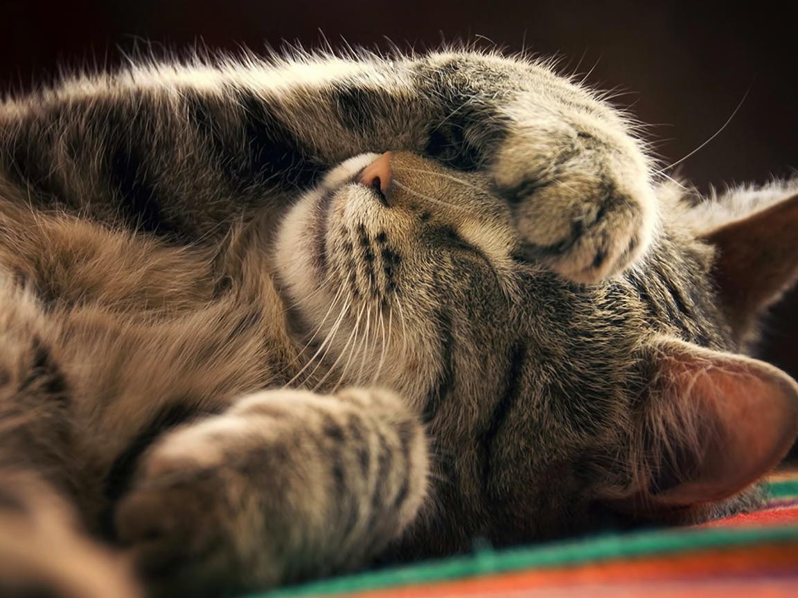 Wallpaper The cat closes a paw a muzzle