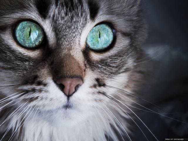 Wallpaper Surprised cat with gray eyes