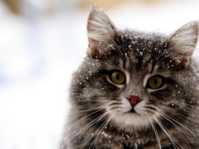 Wallpaper Snow on wool cat
