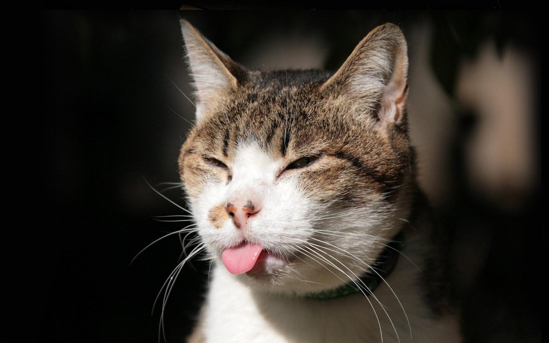 Wallpaper Sly cat shows tongue