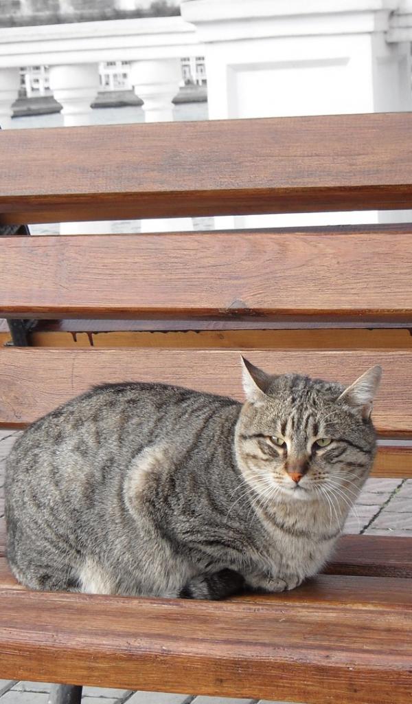 Wallpaper Street cat sitting on a bench in the city