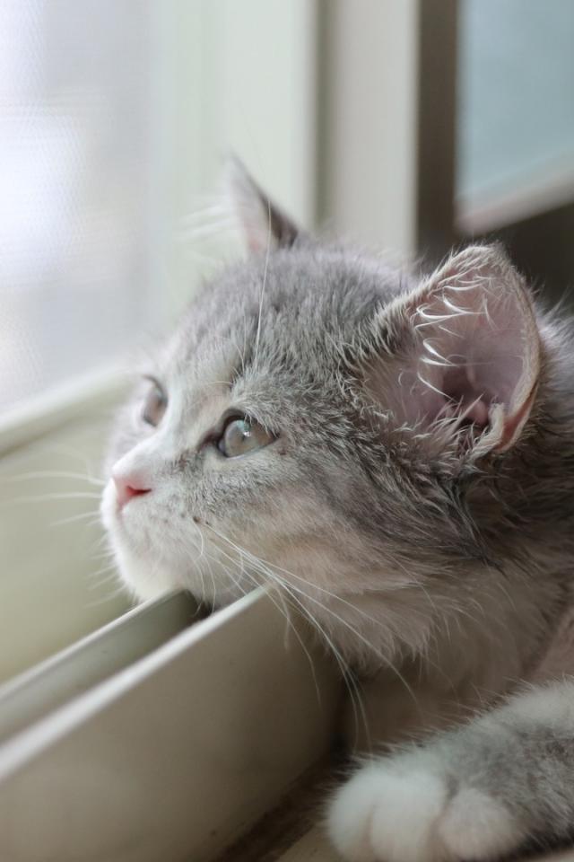 Wallpaper Cat put his head on the window frame