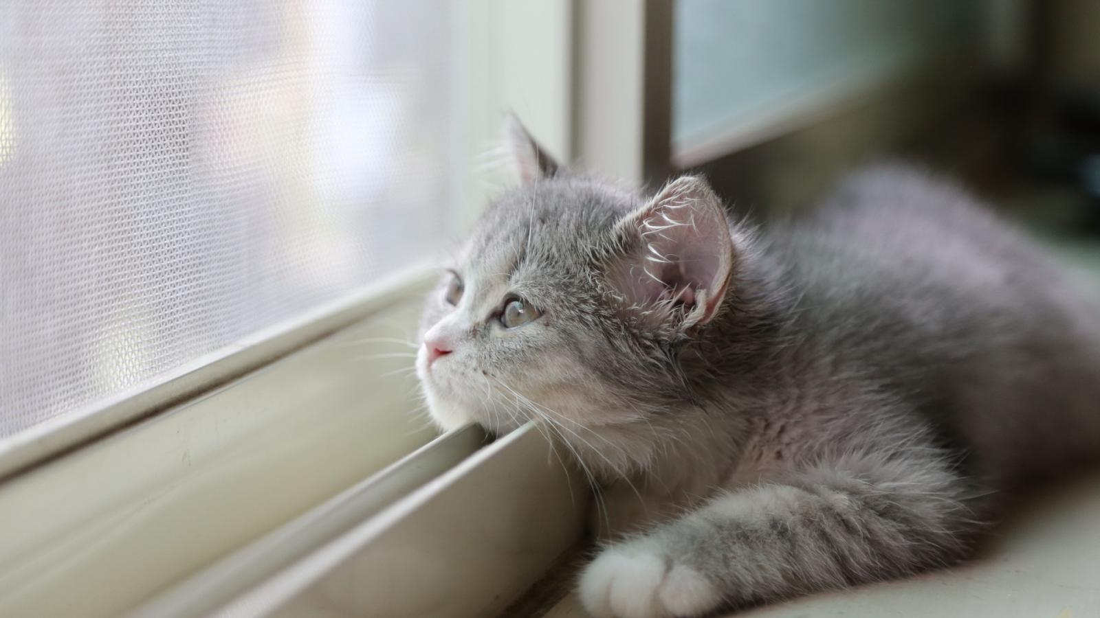 Wallpaper Cat put his head on the window frame