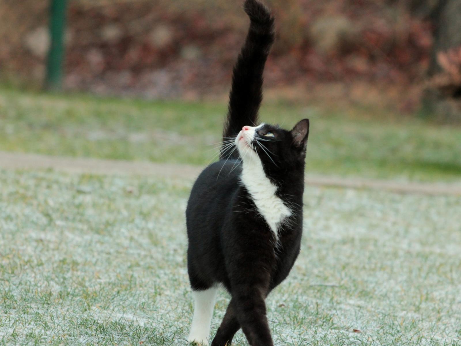 Wallpaper Cat with a black tail looking up