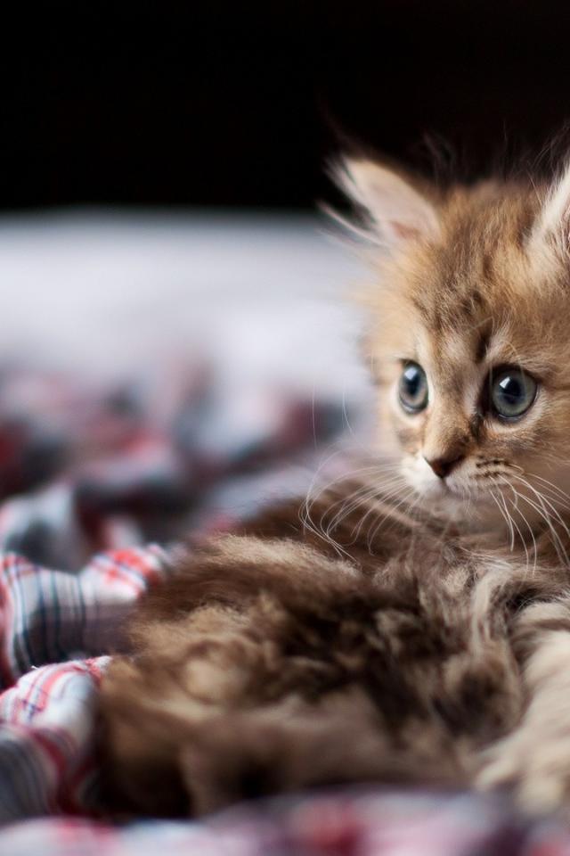 Wallpaper Disheveled kitten in bed