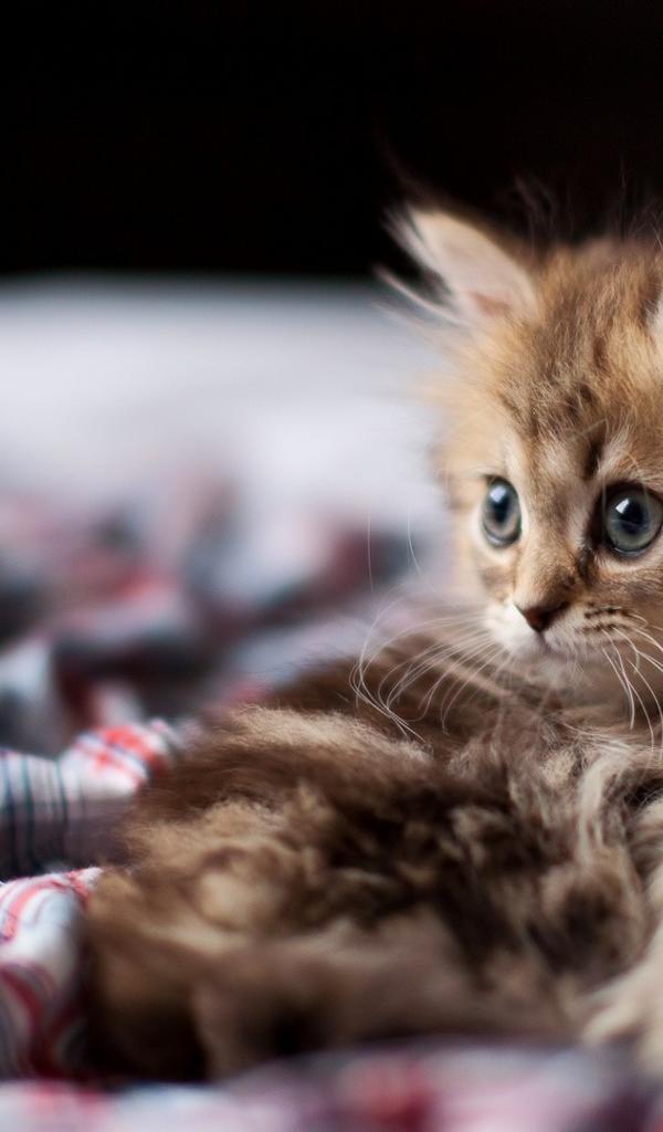 Wallpaper Disheveled kitten in bed