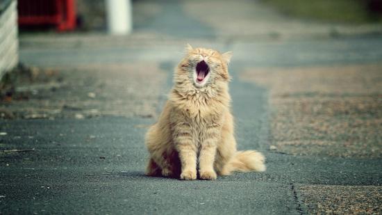 Wallpaper Yawning red cat on the road
