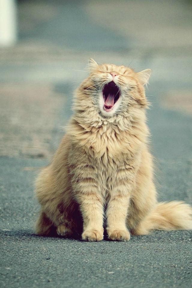 Wallpaper Yawning red cat on the road