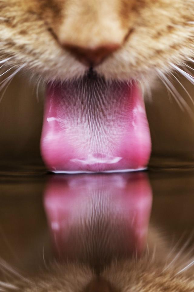 Wallpaper Red cat drinks water