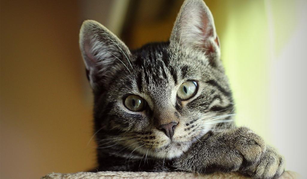 Wallpaper Grey cat with green eyes
