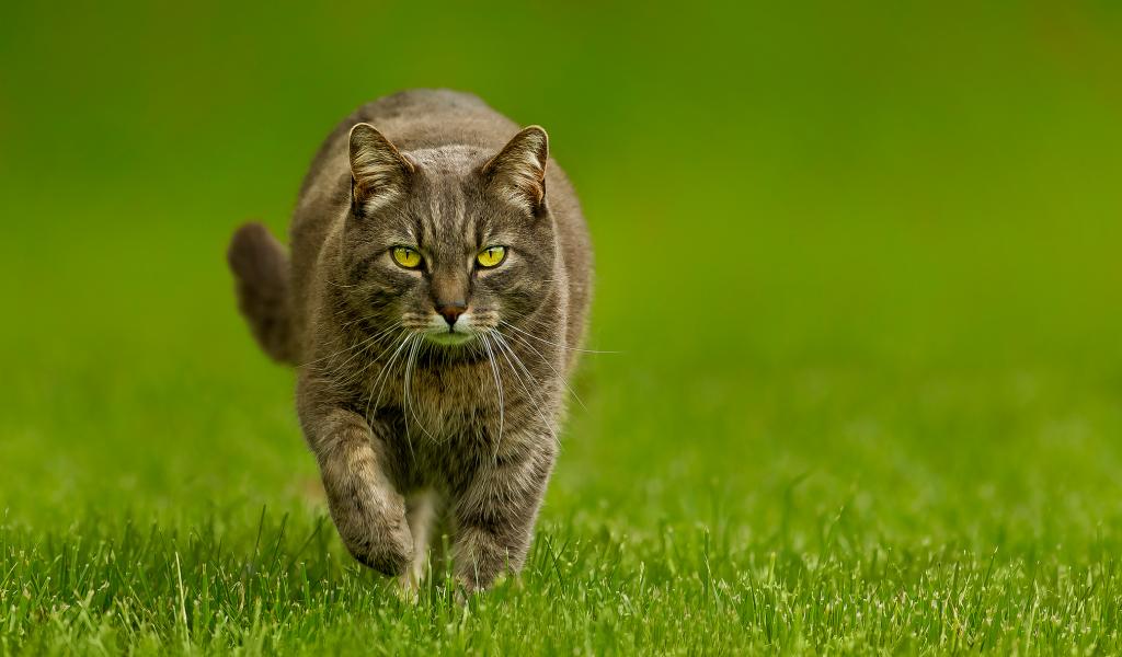 Wallpaper The cat ran across the green grass