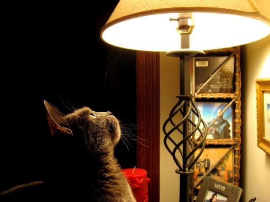 » Wallpaper The cat looks at the lamp