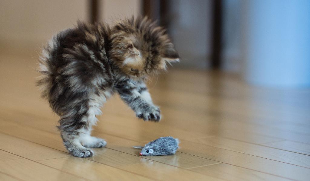 Wallpaper The cat playing with the mouse