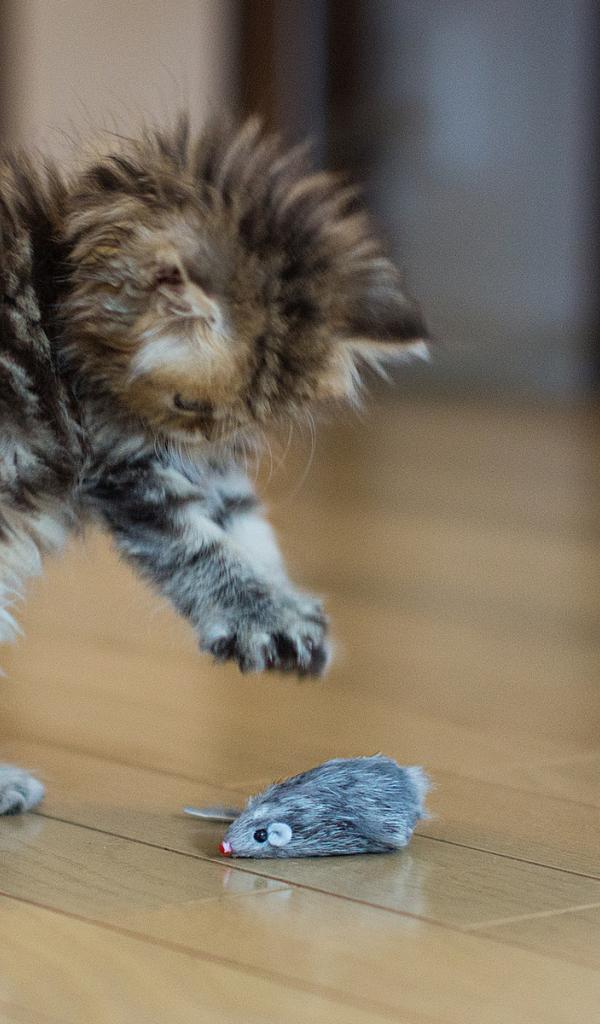 Wallpaper The cat playing with the mouse