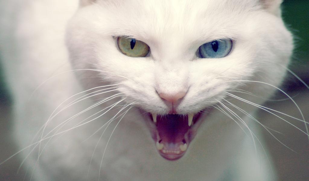 » Wallpaper White cat shows fangs