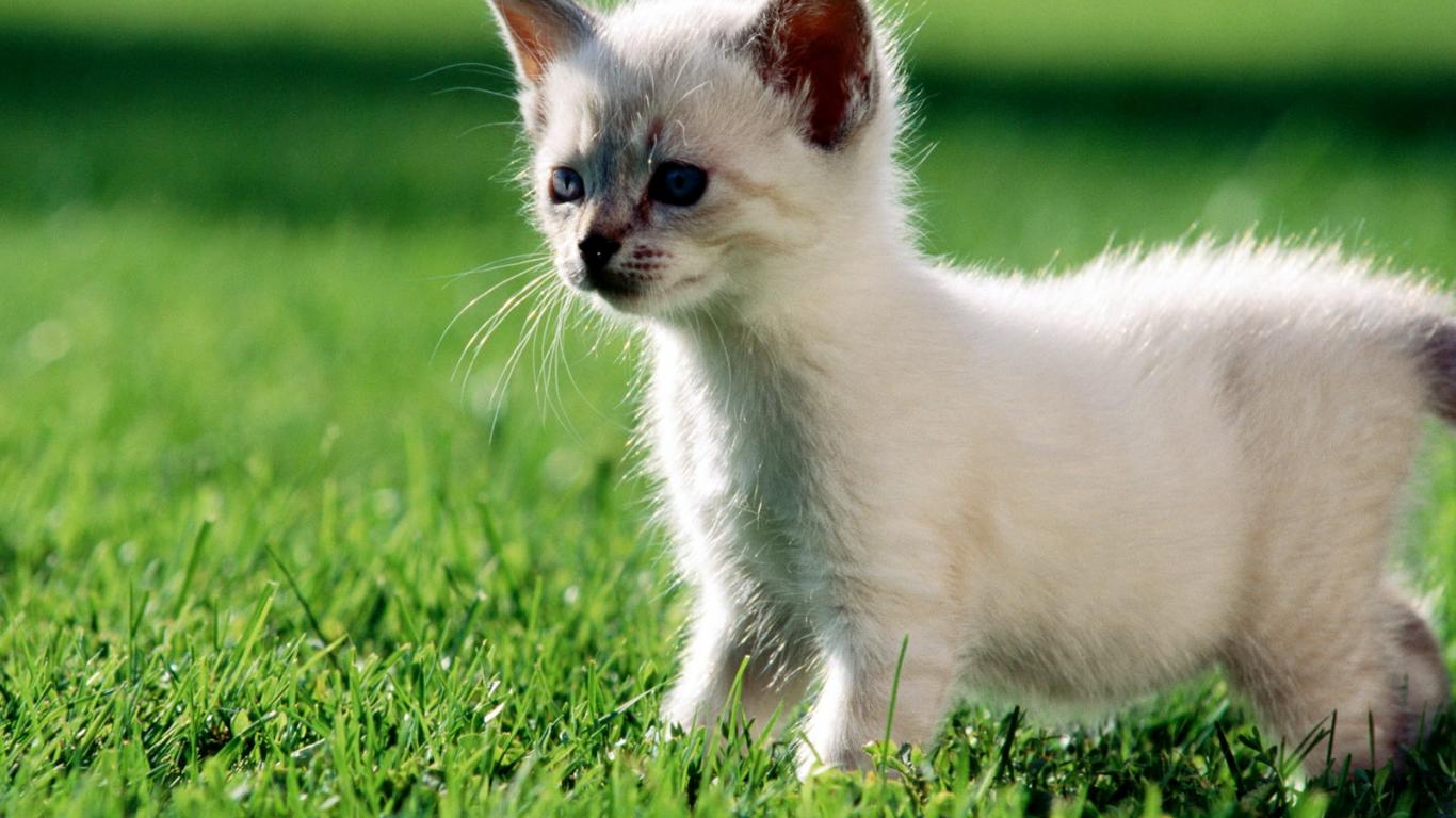 Wallpaper Kitten walks on the lawn