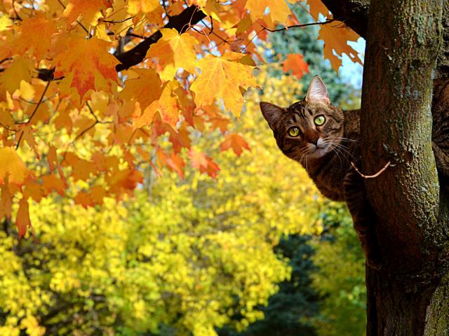 Wallpaper Cat sitting in a tree