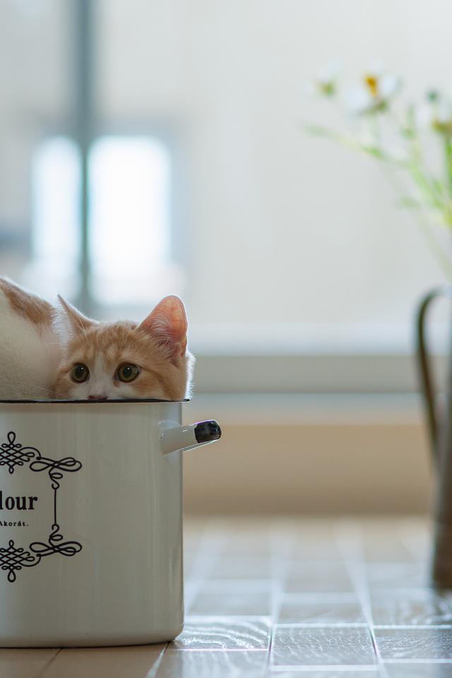 » Wallpaper Kitten in a saucepan