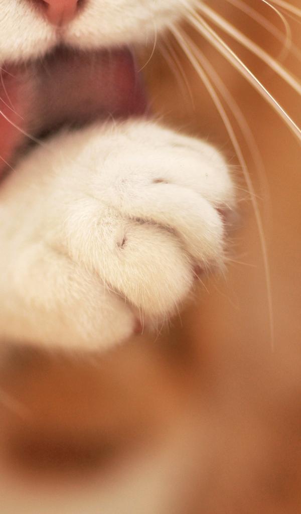 Wallpaper Cat licking paw