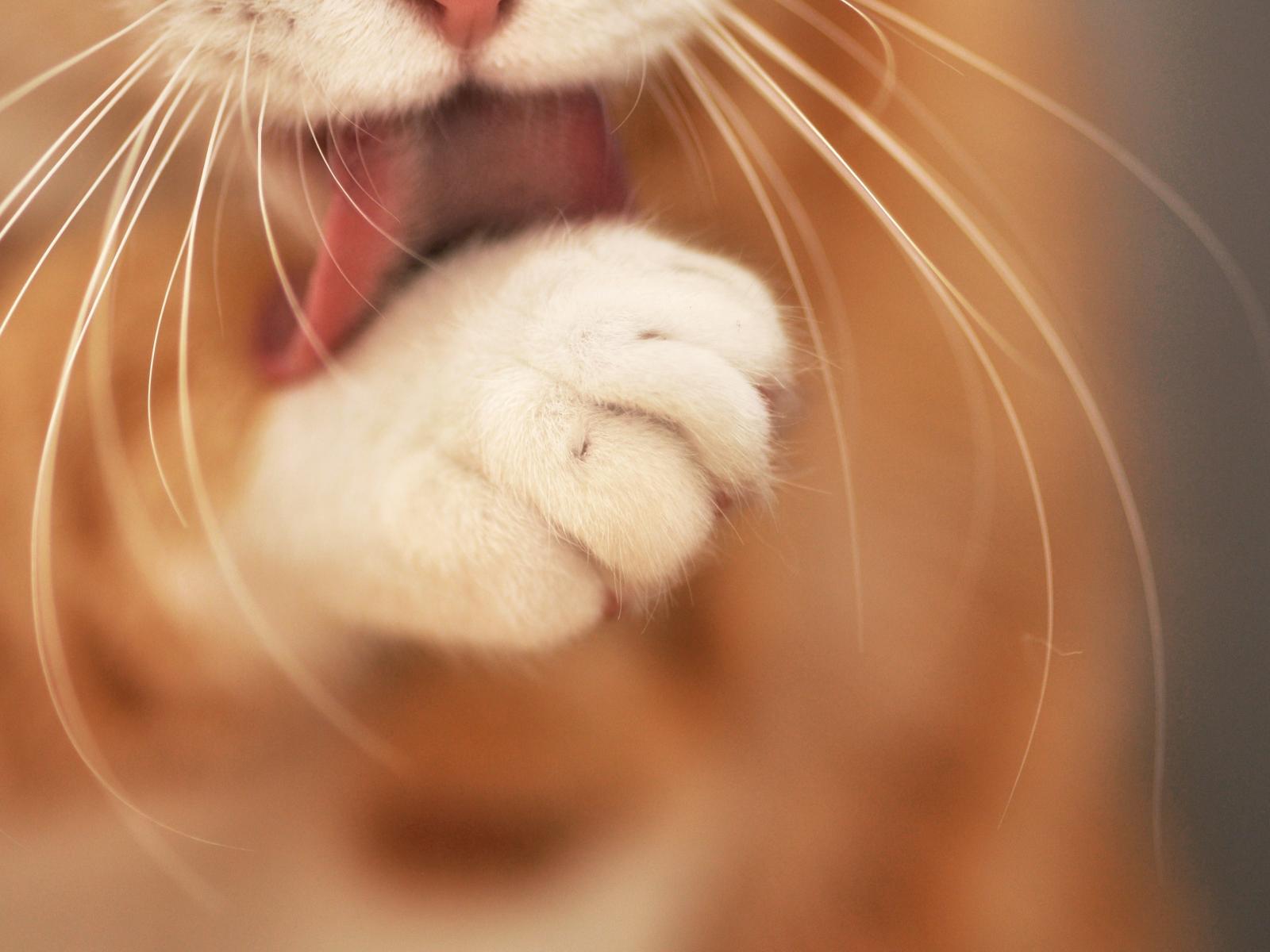 Wallpaper Small beautiful Maine Coon cat licking its paw
