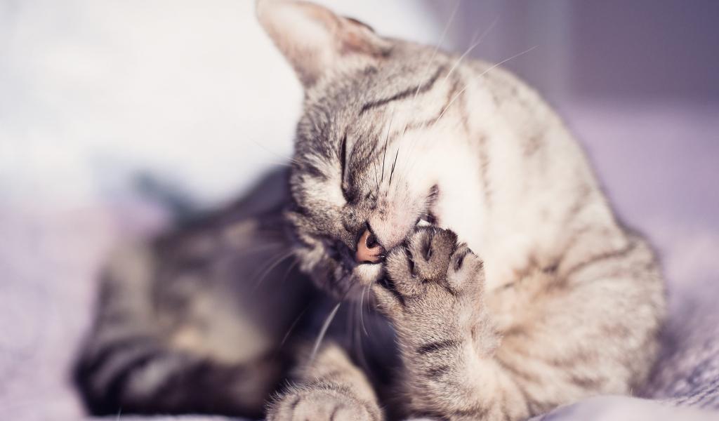 Wallpaper Cat licking paw
