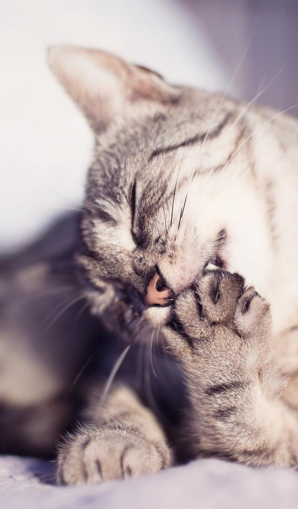Wallpaper Cat licking paw