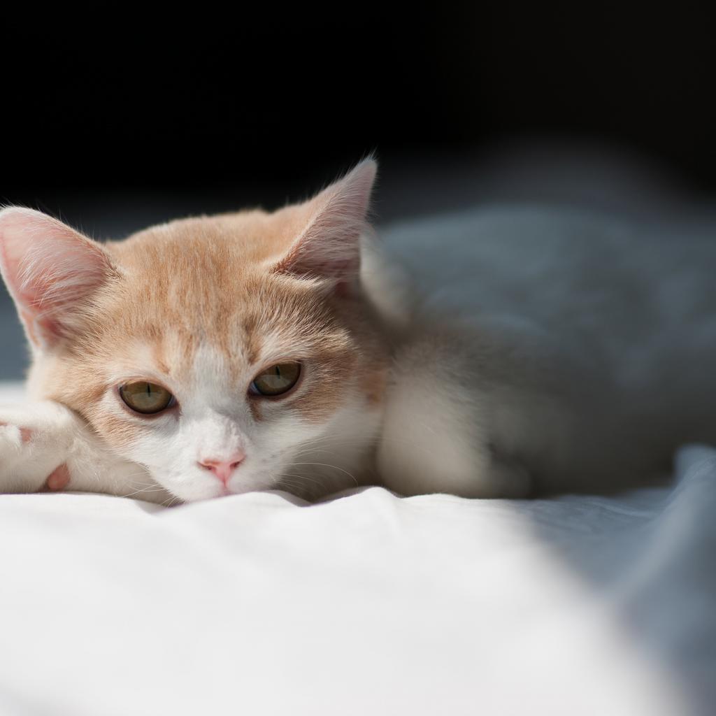» Wallpaper Kitten on a white bed