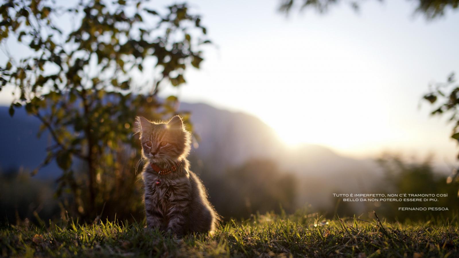 Wallpaper Kitten sitting in the grass