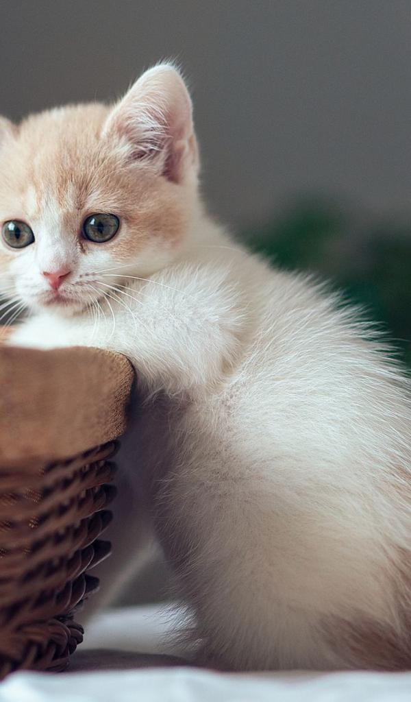 Wallpaper White kitten in a basket
