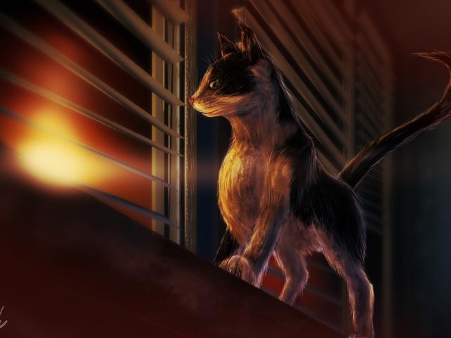 » Wallpaper A cat at the window