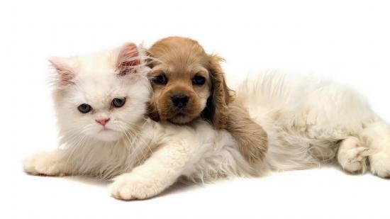 Wallpaper White cat and puppy