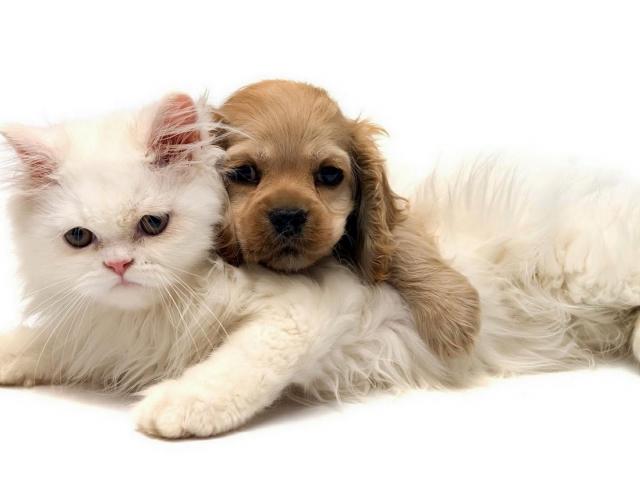 Wallpaper White cat and puppy