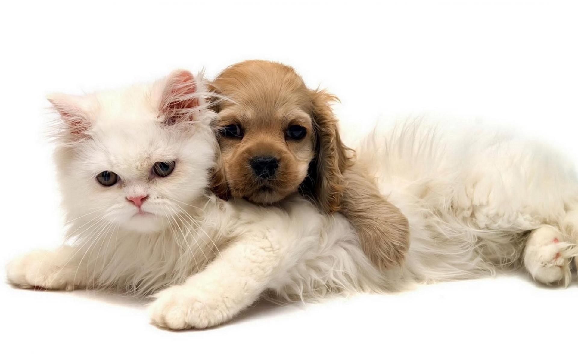 Wallpaper White cat and puppy