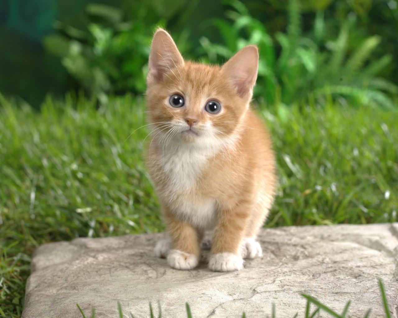 Wallpaper Red kitten on the stone